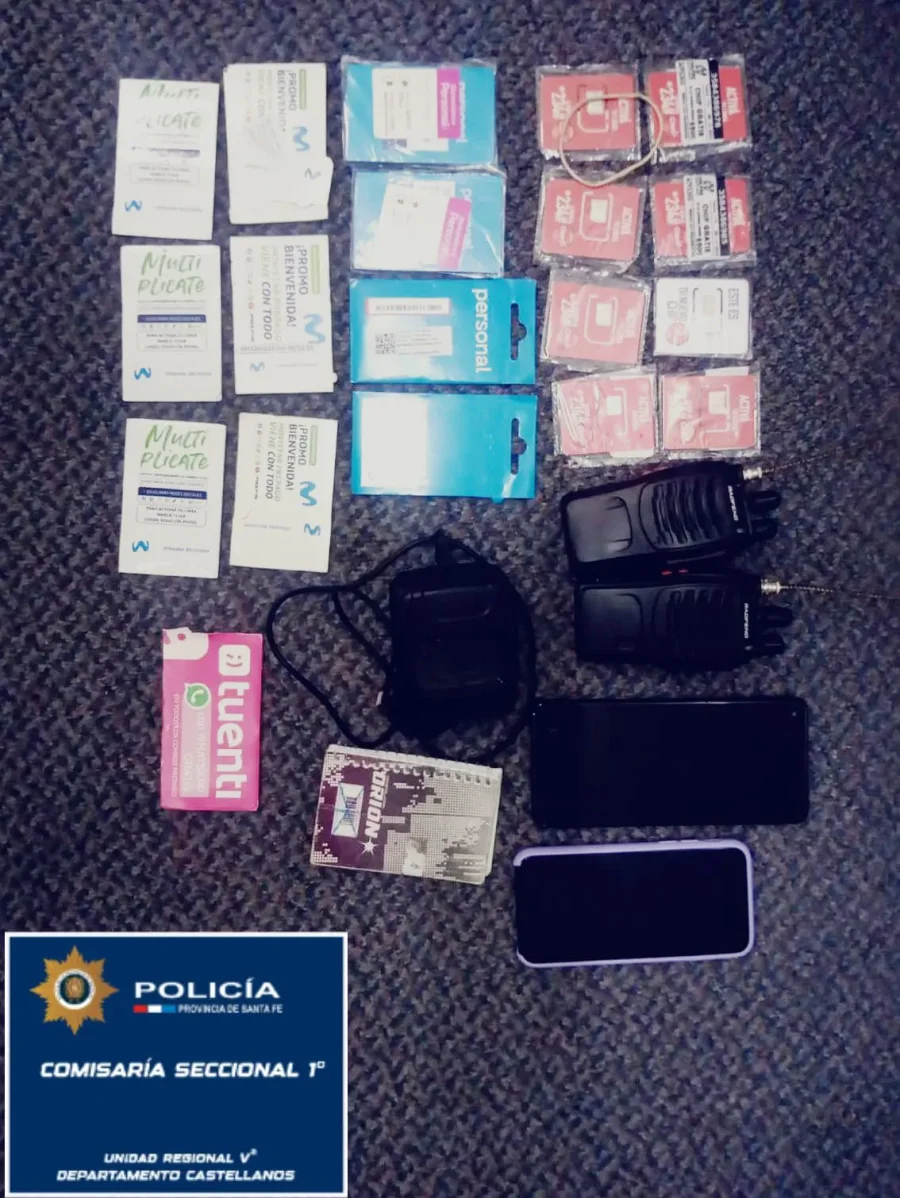 Dado conocimiento al Fiscal en turno, este dispuso el secuestro preventivo de dos handys marca Baofeng con su cargador, una bolsa con chips en su interior, un teléfono celular marca iPhone, y un teléfono celular Samsung, en averiguación del hecho, y su posterior traslado a Comisaría Nº 1 por razones de jurisdicción.