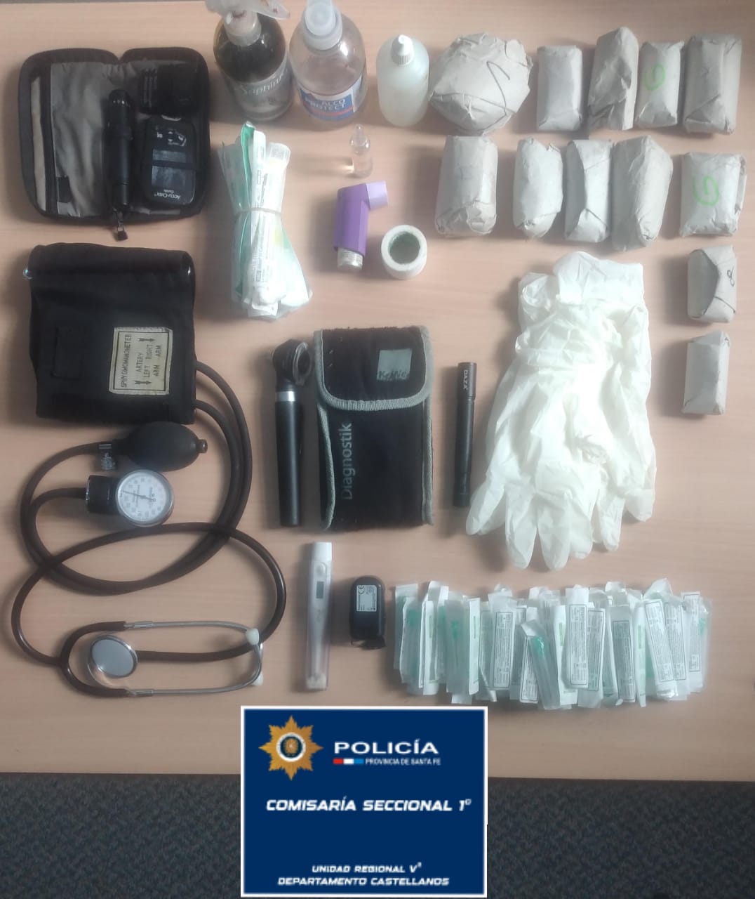 Los mismos, tuvieron que ver con una linterna, un otoscopio, un estetoscopio, un tensiómetro, un termómetro digital, un glucómetro, una docena de paquetes de gasas, 76 agujas descartables, un aspirado, siete guantes de latex descartables, una cinta adhesiva, una ampolla de agua destilada, un frasco de iodopovidona, un frasco de agua oxigenada, y otro de agua destilada.