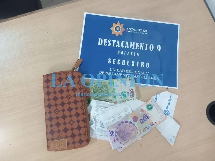 Así las cosas, más tarde junto a un árbol fue hallada una cartera, conteniendo una billetera, y en su interior la suma de 600 pesos, por lo que fue incautado lo antes descripto.