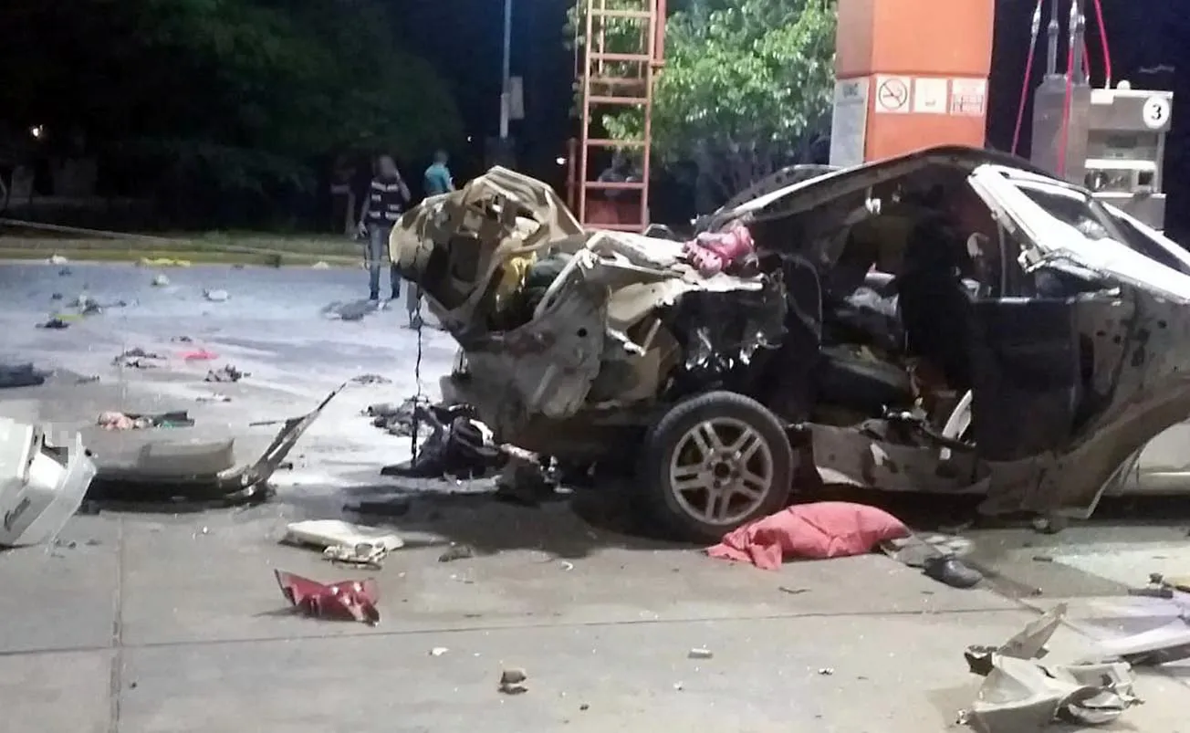 La conductora del vehículo había pedido que le cargaran gas y, de repente, el vehículo blanco explotó y sus partes volaron en pedazos.