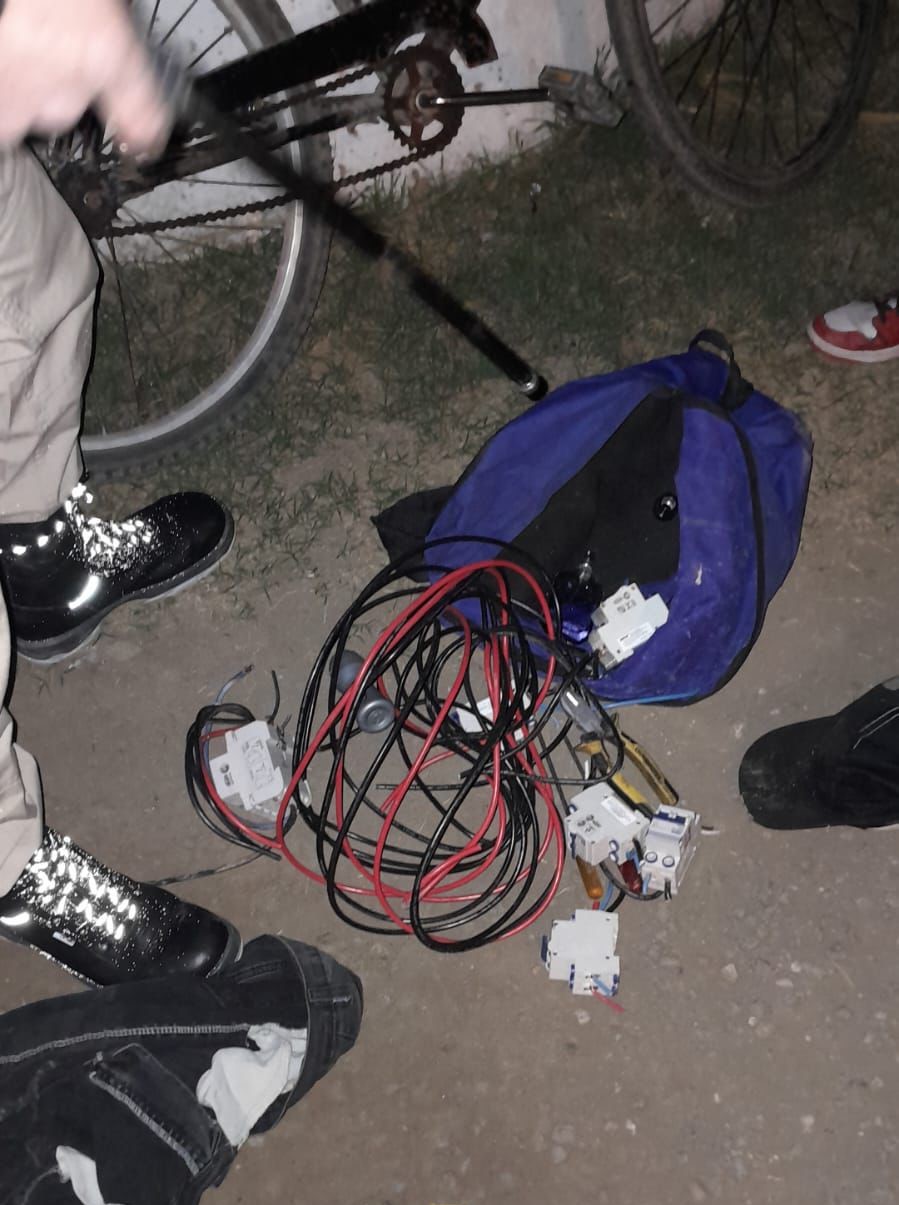 En el lugar -Marchini y Constitución- se presentó personal policial de Agrupación Cuerpos en un móvil, quien requisó al sospechoso encontrando entre sus pertenencias varios metros de cables y otros elementos de electricidad dentro de una mochila grande. Personal de la GUR también se aproximó a la obra en construcción en cuestión, corroborando el faltante de diferentes elementos.