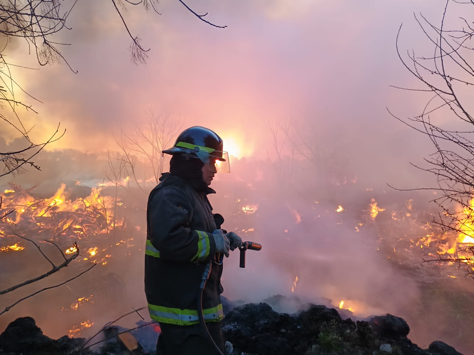 Otra vez se había desatado un proceso combustivo en el lugar, esta vez incluyendo los pastizales ubicados sobre la banquina oeste de la autopista de la Ruta 34 (150 x 20 metros), además de los focos ígneos ya mencionados sobre plantas y basura, en el interior y perímetro de la cava.
