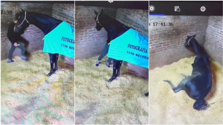 Acto seguido, el equino comenzó a temblar y de pronto se desplomó en el piso, mientras el cuidador sacaba fotos con su teléfono celular.