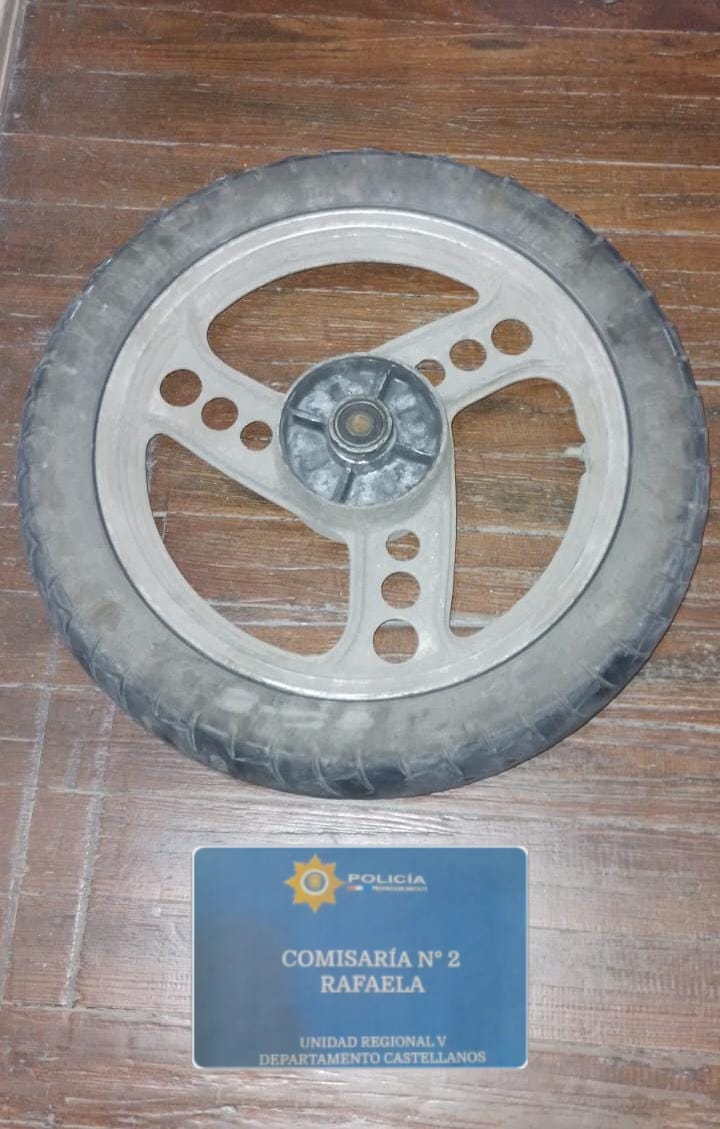 Uniformados de la Seccional 2ª, fueron informados sobre el robo de la rueda de una motocicleta (propiedad de un empleado policial), cuando sestaba estacionada en una de las veredas. ubicadas en cercanía del cruce de las calles E. Salva y Arenales, en un hecho del que participaron dos malvivientes.