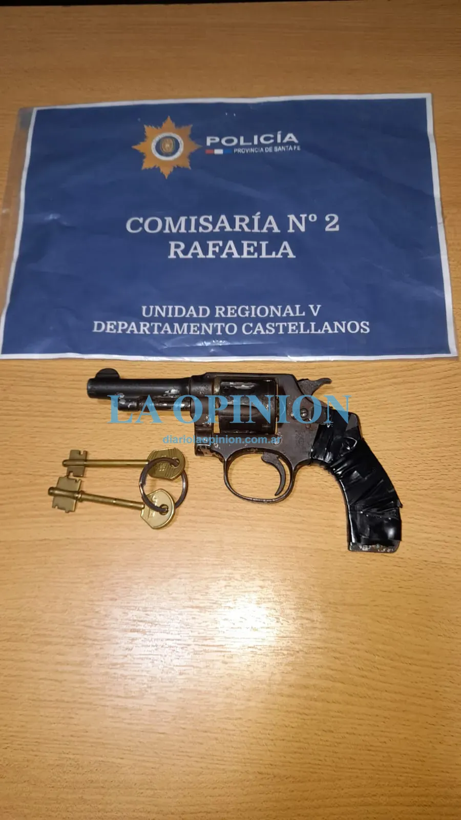 Seguidamente, contando con la presencia de la gerenta general, los policías actuantes realizaron una requisa en la habitación, y en la caja de seguridad abierta por la mujer con una llave especial, se hallaron un revólver calibre 32 sin proyectiles en el tambor, y dos llaves doble paleta, elementos que fueron secuestrados.