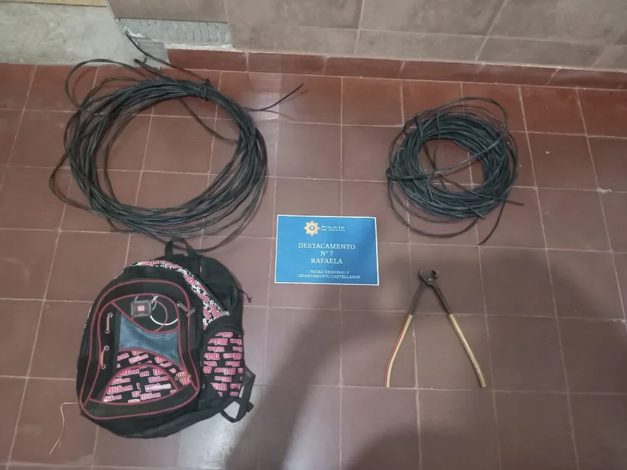 En consecuencia, se llevó adelante el secuestro de los elementos de referencia, tratándose de una mochila, aproximadamente 100 metros de cable, y una tenaza con los agarres aislados con manguera de goma.