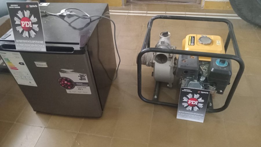 En el operativo los efectivos no sólo hallaron la carne y las bebidas, sino que también secuestraron un refrigerador tipo frigobar y una motobomba, que habían sido robados en un vivero de esa localidad el día 15 de marzo.