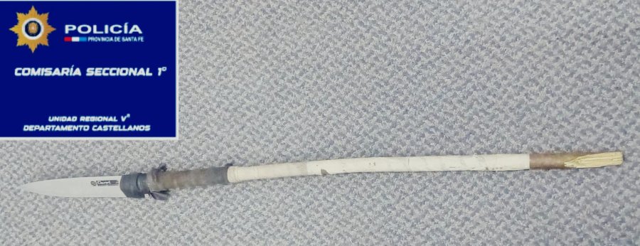 Se trató de Facundo Máximo A., de 18 años de edad, afincado en Don Orione al 2000, quien fue detenido en la esquina de Río de Janeiro y Albarracín, en una acción en la que fue secuestrada una "chuza", o sea un trozo de madera con la hoja de un cuchillo en una punta.