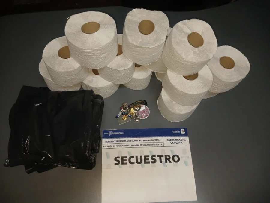 Los menores delincuentes tenían en su poder 14 rollos de papel higiénico, un rollo de bolsas de consorcio negras, y un manojo de llaves de la institución.