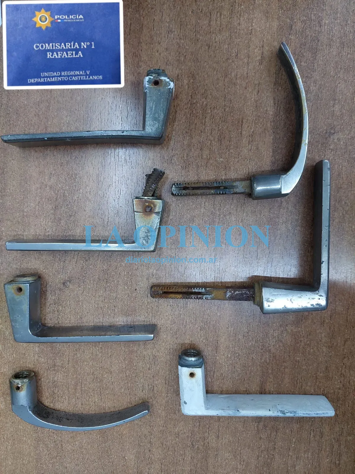 El citado, de nombre Andrés Elías A., de 24 años de edad, afincado en la calle Pascual Brusco al 1300, tenía en su poder siete picaportes de bronce, por lo que se concretó la detención y el traslado a sede policíaca, a los fines determinados por la ley.