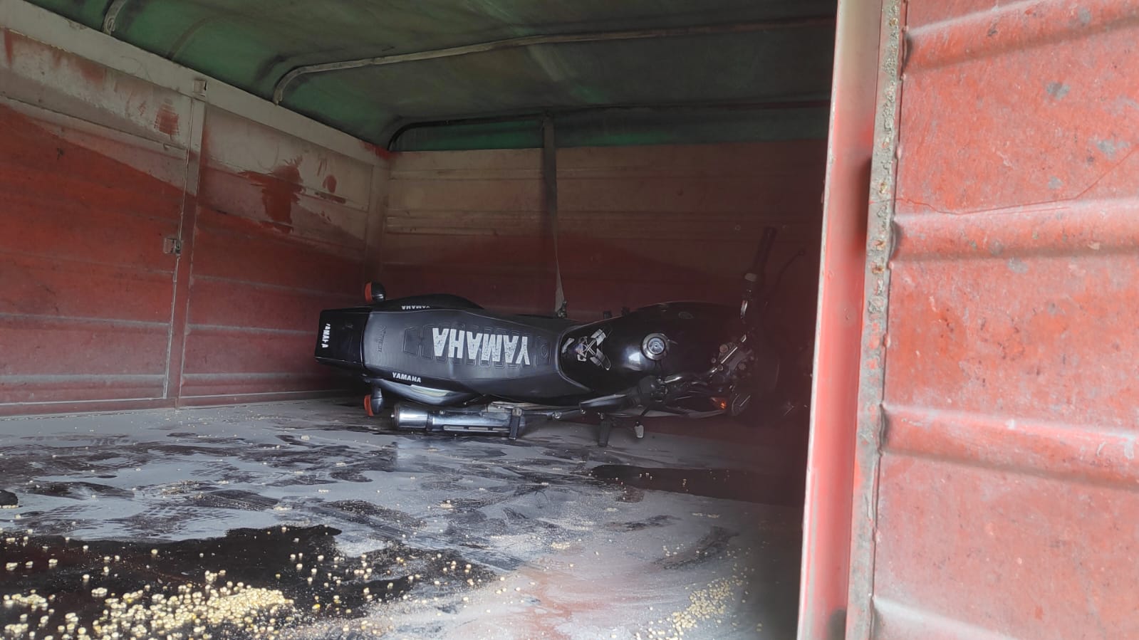 La Policía trabajando en conjunto, logró interceptar un cami´ón que trasladaba una moto robada.