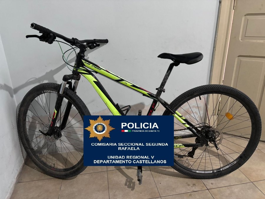 En la esquina de bulevar Santa Fe y calle Alvear, personal de la Unidad Regional V de Policía ubicó una bicicleta, que había sido robada desde el bicicletero, sito frente al edificio que ocupa la Municipalidad.