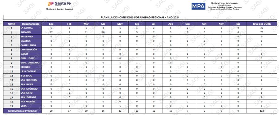 La provincia de Santa Fe registra en 2024 la cifra más baja de homicidios de la última década, de acuerdo a los datos obtenidos y elaborados de manera conjunta por la Secretaría de Política Criminal y Derechos Humanos, dependiente de la Fiscalía General del Ministerio Público de la Acusación (MPA), y de las divisiones de Informaciones de las 19 unidades regionales de la Policía de la Provincia.