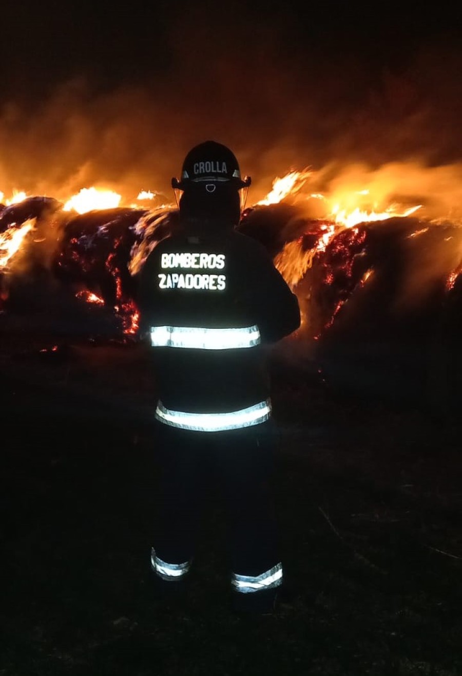 A la 1.10 de la madrugada de ayer, personal del Cuartel Norte de la Agrupación Bomberos Zapadores de Rafaela, se hicieron presentes en la intersección de calle Normando Corti y bulevar Lehmann -barrio San José-, debido a un incendio de rollos de pasturas de gran magnitud.