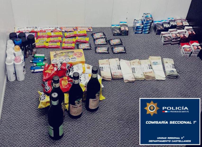 El malviviente se negó a mencionar desde dónde había obtenido cuatro botellas de fernet, 45 atados de cigarrillos de diferentes marcas, chocolates varios, snacks, 13 envases desodorante en aerosol, 6 encendedores, una caja de caja de Bon o Bon, y dinero en efectivo (cambio),y finalmente fue trasladado a sede policial.