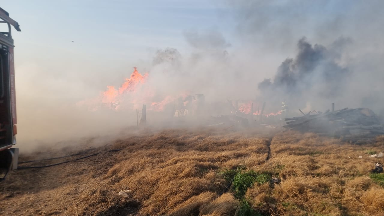 Al llegar pudieron apreciar un proceso combustivo de gran magnitud, debido a la propagación hacia una importante acumulación de pallets y maquinarias viales en desuso.