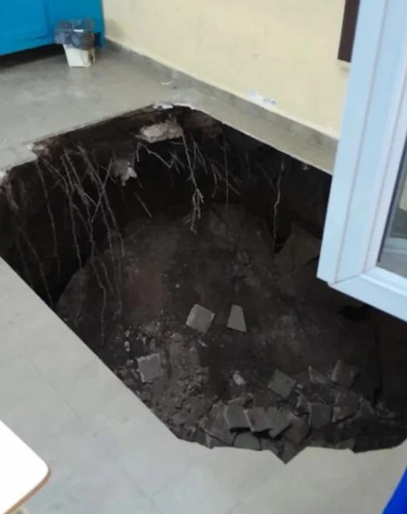 La escuela es la más antigua de la vecina ciudad -tiene casi 137 años- y la rotura se habría generado por un pozo ciego cerrado y en desuso.
