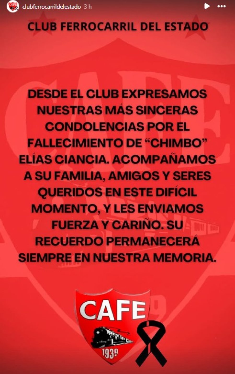 Ciancia había sido jugador de fútbol de los equipos de Ferrocarril del Estado y de Deportivo Ramona. En este marco, la institución rafaelina se pronunció en sus redes sociales con el siguiente mensaje: "Nuestras más sinceras condolencias por el fallecimiento de 'Chimbo' Elías Ciancia. Acompañamos a su familia, amigos y seres queridos en este difícil momento y les enviamos fuerza y cariño. Su recuerdo permanecerá siempre en nuestra memoria".