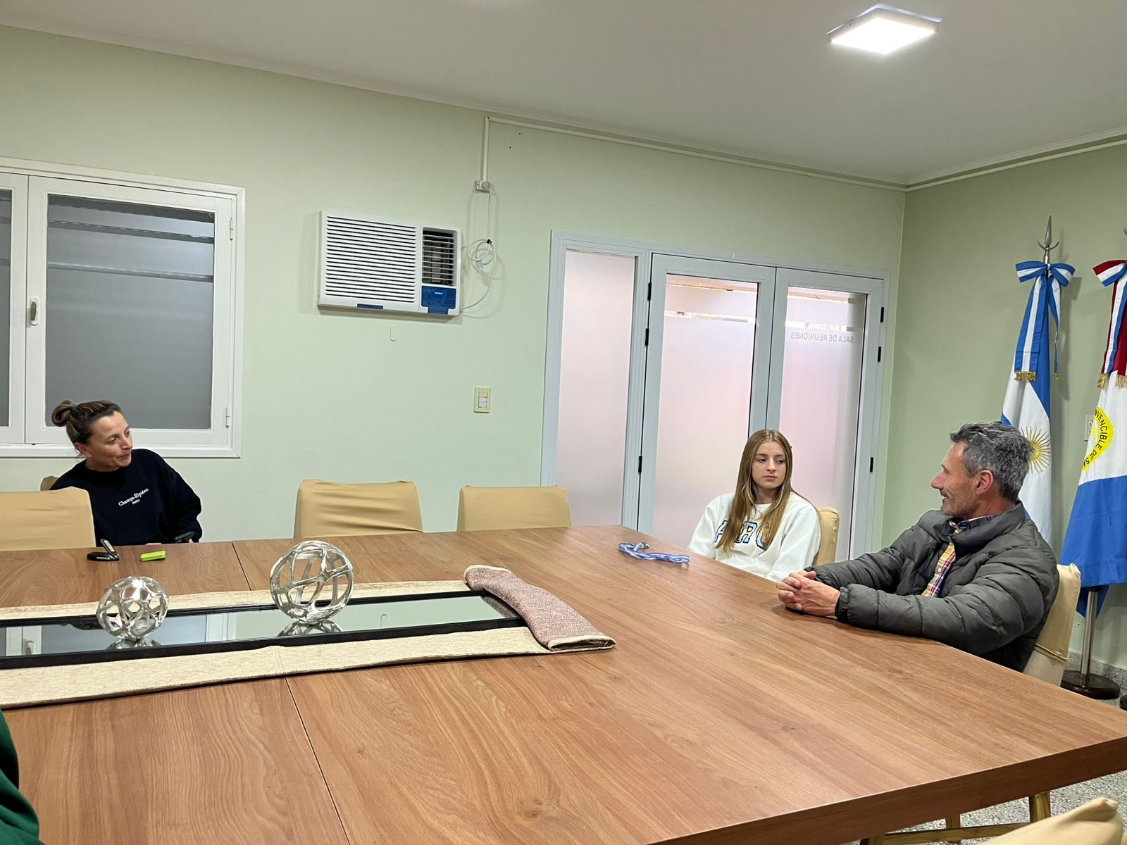 TACURAL. - La comunidad toda celebra el logro de Esmeralda Fler, es por ello que, para expresarle las felicitaciones y la complacencia de los tacuralenses es que Adrián Sola, presidente comunal , la recibió en su despacho a la joven consagrada recientemente campeona argentina de natación categorías Cadetes 1 y 2 que se realizó en Parque Roca, Buenos Aires representando al Club Atlético Unión de Sunchales.