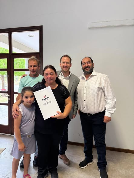ANGÉLICA.- La Comuna puso de relieve un significativo acto realizado recientemente, en tal sentido se enfatizó que se hizo entrega a la Familia de Mario Lechman el acta dominial de su vivienda, un trámite que regulariza la situación de la escritura de su inmueble.