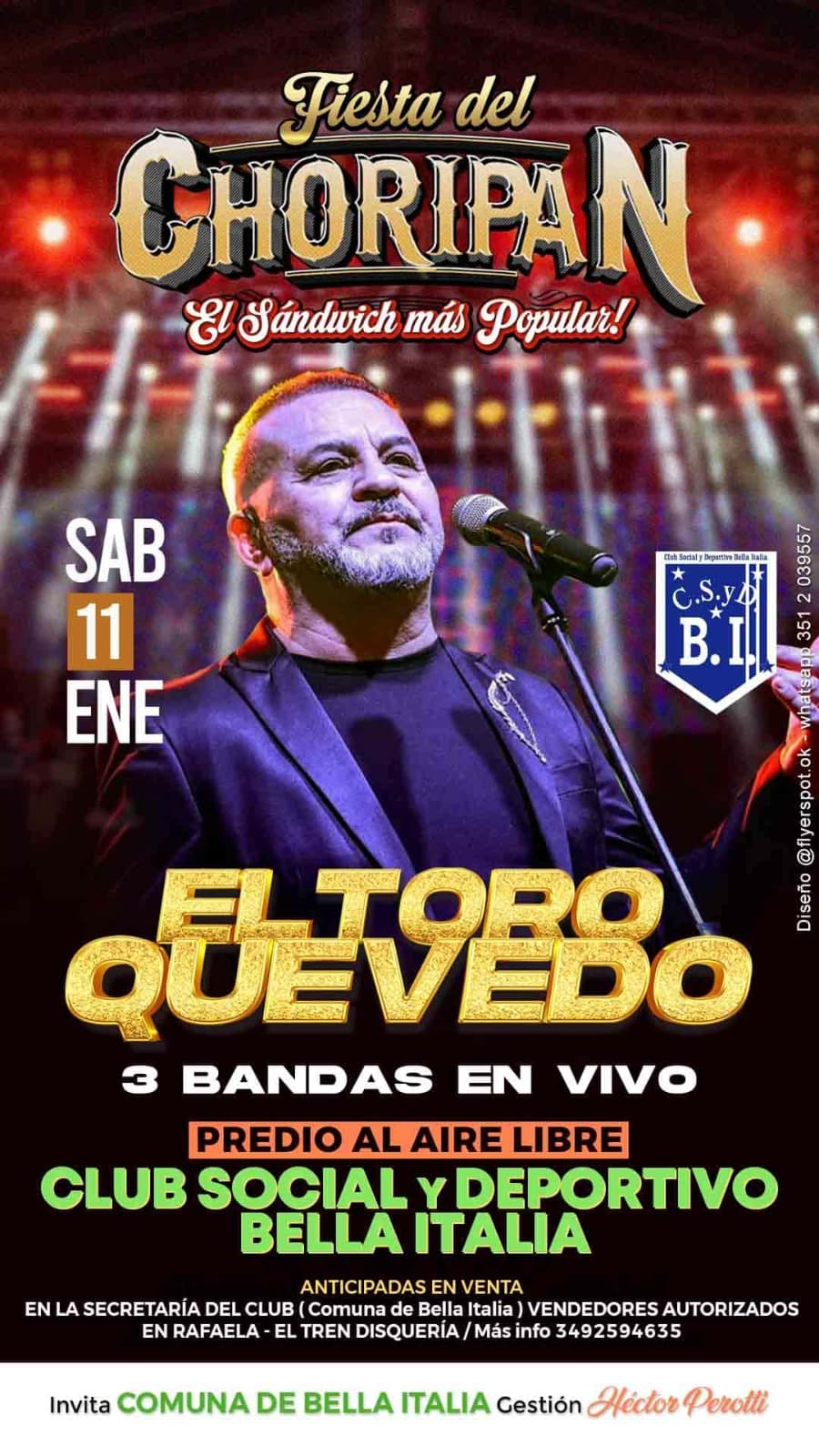 BELA ITALIA.-El próximo sábado 11 de enero, se realizará en las instalaciones de Club Social y Deportivo Bella Italia la tradicional Fiesta del Choripán.
