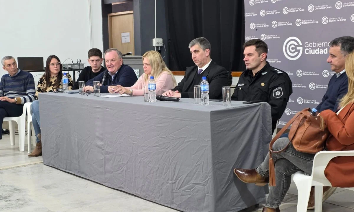 En la ciudad de Ceres, se llevó a cabo una nueva reunión entre el senador Felipe Michlig, el diputado Marcelo González, el Fiscal Regional de la Circunscripción Judicial Nº 5, Carlos Vottero, titulares de gobiernos locales, representantes de instituciones y autoridades policiales, con el objetivo de profundizar acciones en materia de seguridad urbana y rural, problemáticas sociales y acciones de prevención.