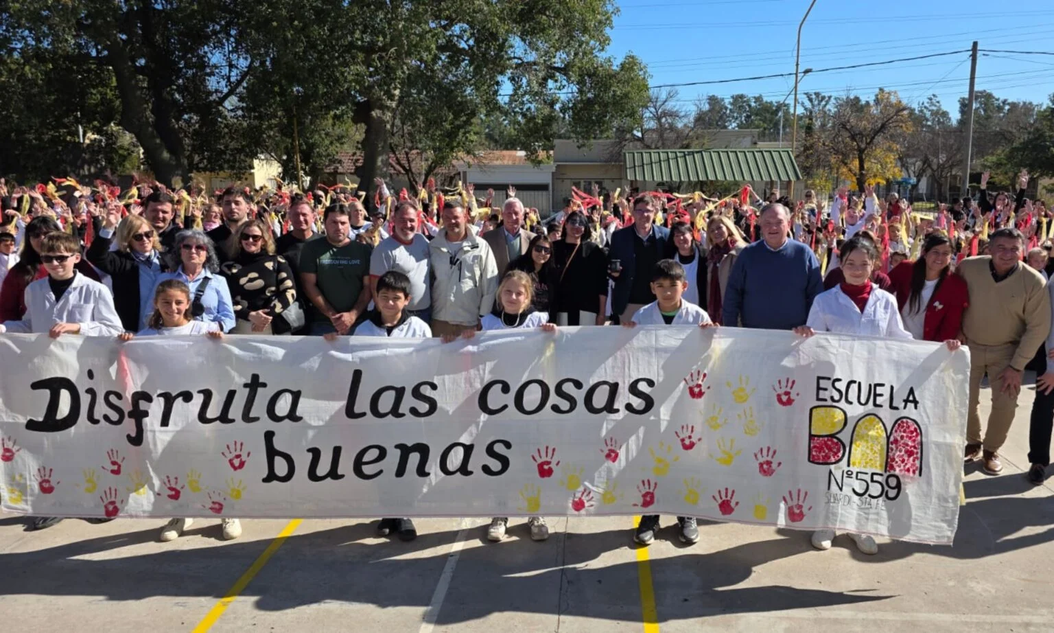 -Una en la Escuela N.º 559 “Bartolomé Mitre”, con presencia del equipo directivo, docentes, estudiantes y familias.