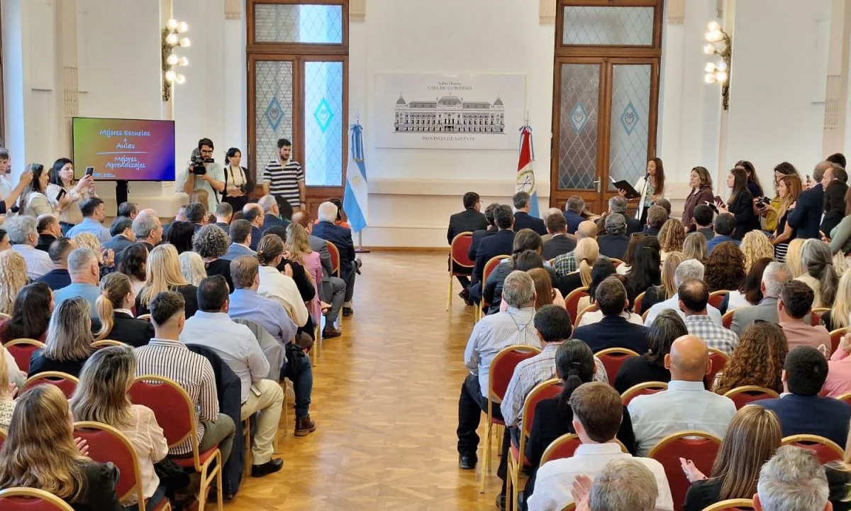 Durante el acto de ayer en el Salón Blanco de la Casa de Gobierno de Santa Fe se firmaron “convenios para la construcción de 47 aulas en 45 localidades de la provincia que demandan una inversión de $ 48 millones por aula, mientras que la inversión total asignada para este año fue de $ 10.000 millones”, explicó el ministro de economía Pablo Olivares.