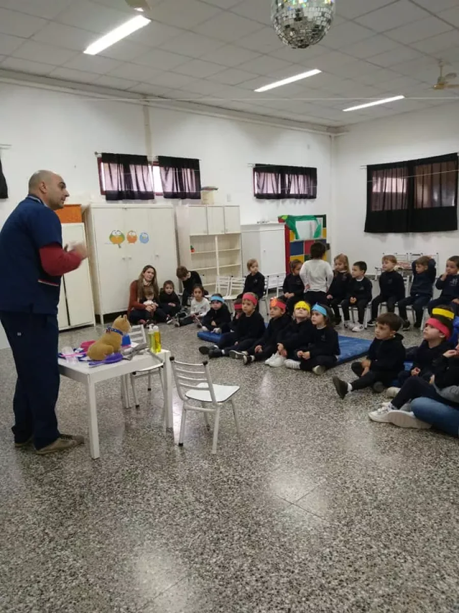 SUNCHALES (De nuestra Agencia). - En la semana anterior y en el marco del Día del Animal, el veterinario Mauro Cortassa- Centro Municipal de Salud Animal, CeMuSa- comenzó a brindar charlas sobre cuidado y tenencia responsable de mascotas a los pequeños de sala de 3 del Jardín Municipal Berta Giacosa, ya los niños y niñas de sala de 5 del Jardín San José.