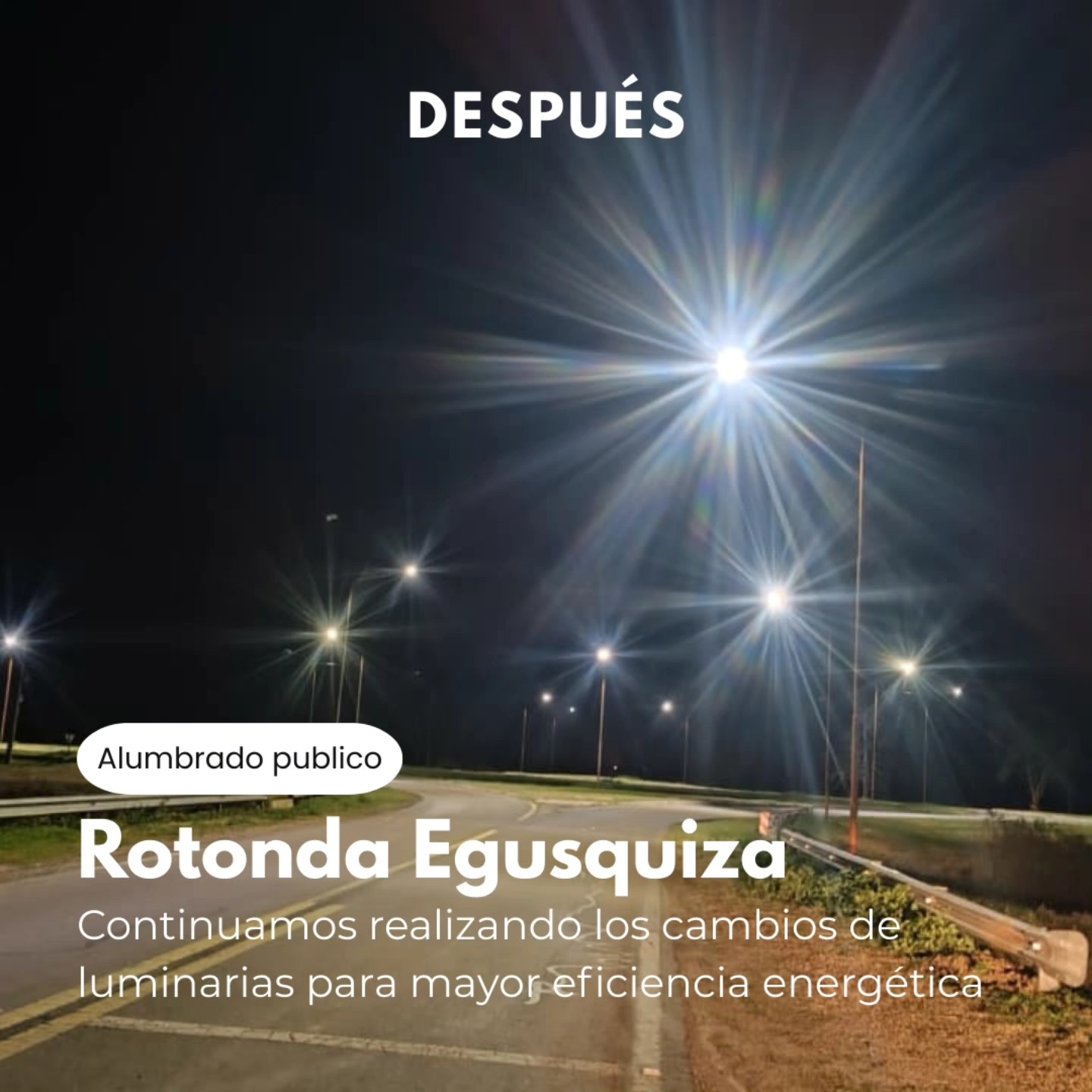 EGUSQUIZA.- La Comuna puso de relieve que a través de un convenio firmado con el administrador general de la Dirección Provincial de Vialidad, Pablo Seghezzo y la Comuna, se realizó el recambio de 23 artefactos de sodio a iluminación LED en la rotonda de acceso a nuestra localidad. También en Capilla Fassi se realizó el recambio de artefactos existentes y se anexaron dos columnas más con el respectivo tablero general de alimentación.