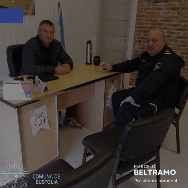 EUSTOLIA.- Desde la Comuna se difundió que recibieron en la Oficina Comunal al Jefe de Zona Inspección II, Comisario Andrés Márquez para conversar sobre el refuerzo en el patrullaje y la prevención a fin de mejorar las condiciones de seguridad en la zona
