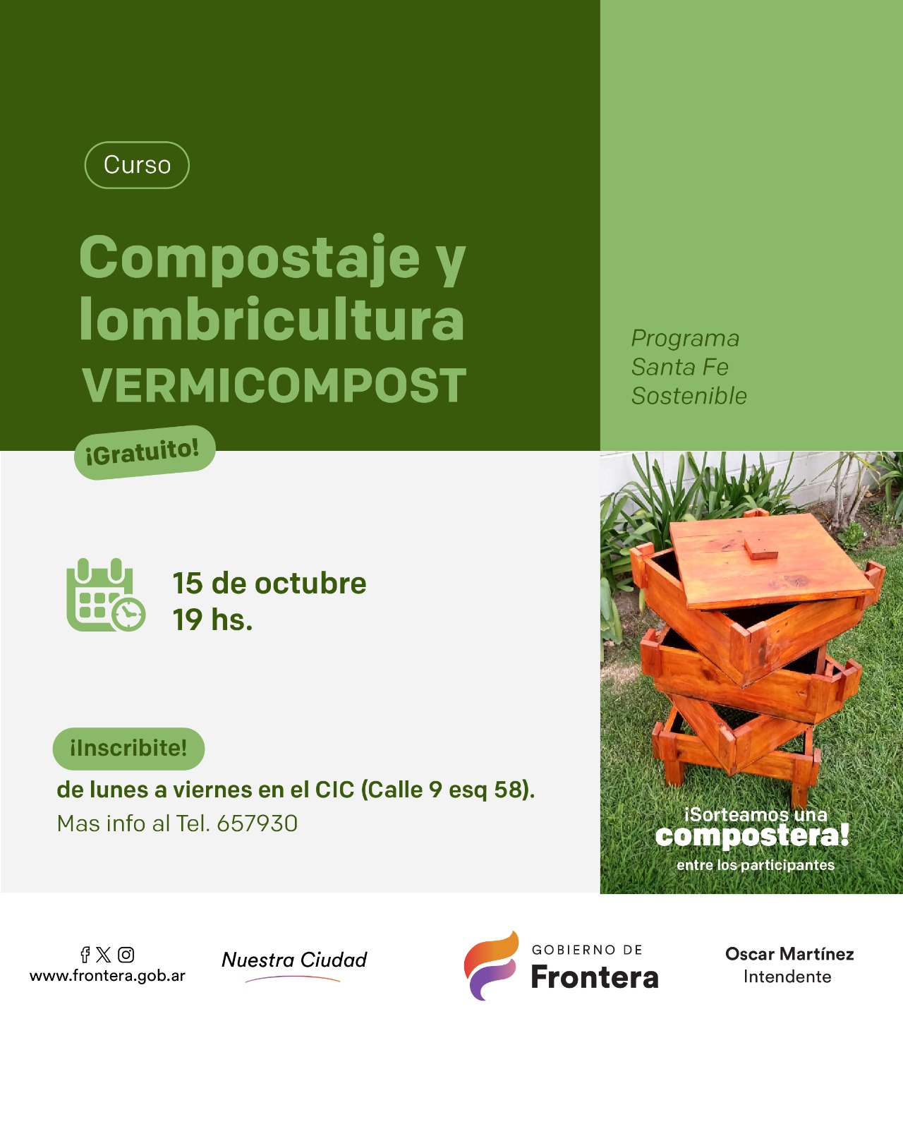 FRONTERA.- La Municipalidad local , en el marco del programa Santa Fe Sostenible anuncia la realización de un curso gratuito de compostaje y lombricultura.