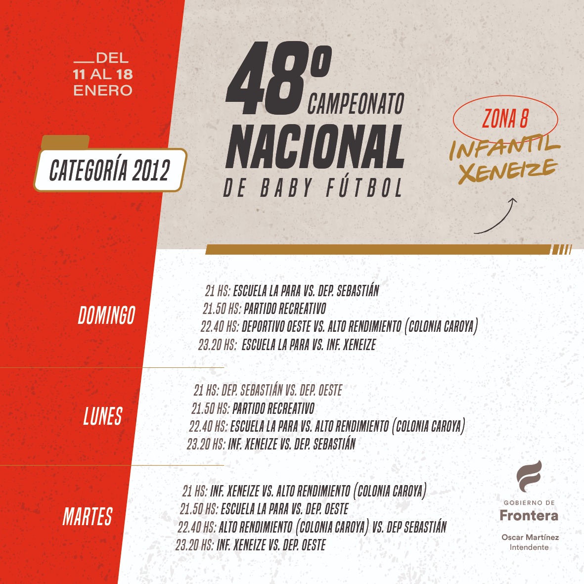 FRONTERA.- El próximo sábado 11 de enero se llevará a cabo la inauguración de la cuadragésimo octava edición del Campeonato Nacional de Baby Fútbol en la cancha del Centro Deportivo River de la ciudad de San Francisco, teniendo el mismo, la participación de los equipos de nuestra ciudad.
