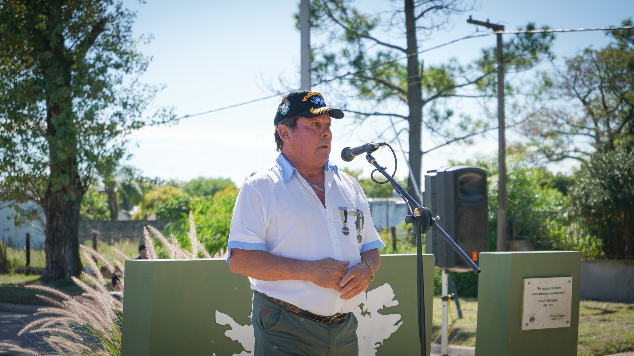 Uno de los momentos más emotivos fue cuando Evaristo Sequeira usó de la palabra. Manifestó el profundo orgullo que siente haber defendido a la Patria, que la post guerra no le ha sido nada fácil. Por ello agradeció a toda su familia la contención y también a los humbertinos el acompañamiento permanente. Evaristo hoy recorre distintas instituciones (especialmente educativas) de la localidad y la zona, contando su experiencia que vivió hace 43 años y también ha contado que es padrino de dos escuelas rurales en la provincia del Chaco.