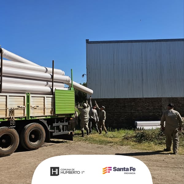 HUMBERTO PRIMO (Por Jorge Luis Mezzabarba).- En sus redes sociales la Comuna enfatizó que hoy celebran un gran avance para nuestro pueblo: ya llegaron los caños de PVC que formarán parte de la ampliación del servicio de cloacas en el Barrio Faule.
