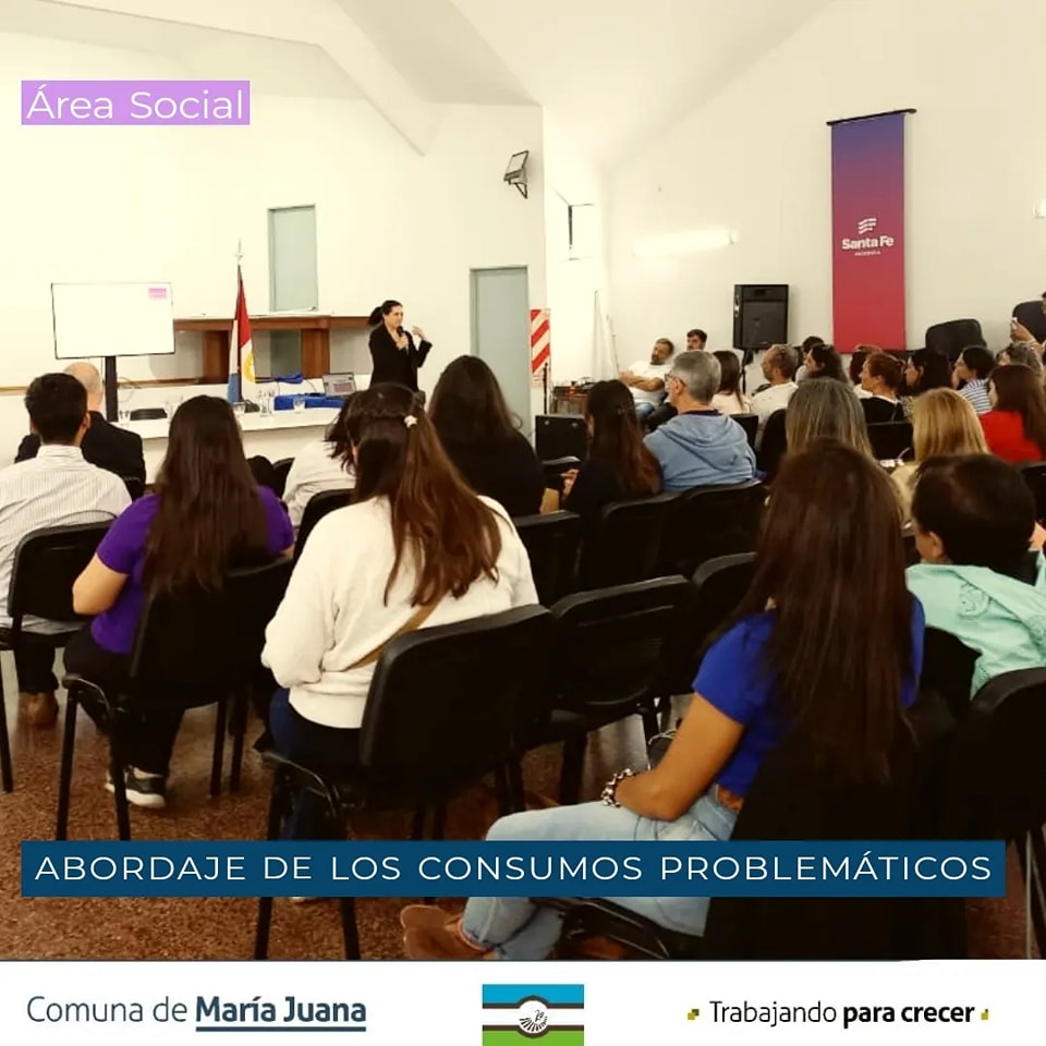 MARÍA JUANA.-El equipo del Area Social Comunal junto a la directora del SAMCo local, Dra Laura Alassia. participaron del cierre del Curso Provincial "Abordaje integral comunitario de los consumos problemáticos”.