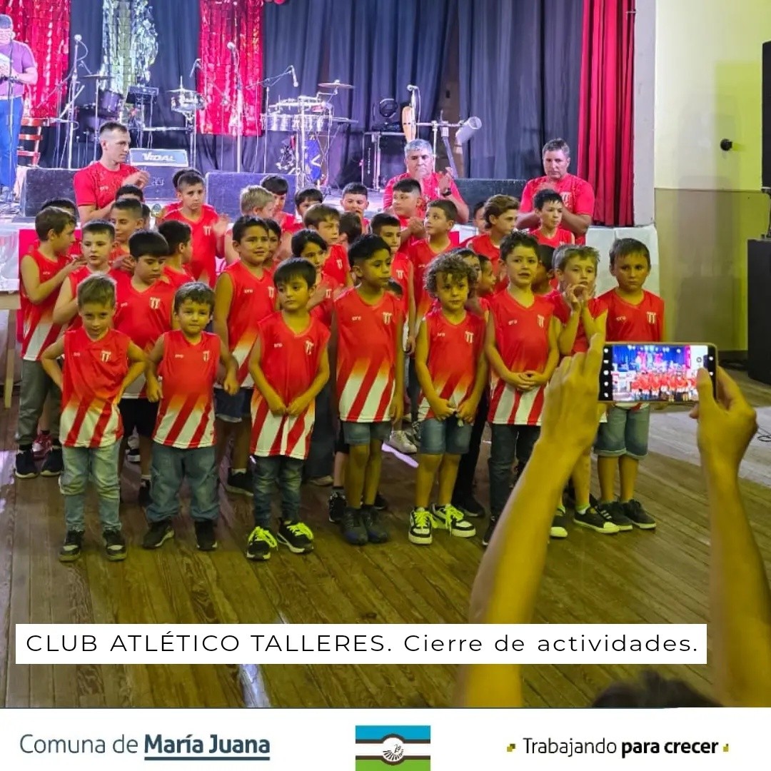 MARÍA JUANA.- La Comuna local destacó que el sábado por la noche, el Club Atlético Talleres, uno de los pilares fundamentales para la formación cívica y deportiva de cada mariajuanense, cerró su año lleno de actividades y objetivos cumplidos. Acompañados por sus deportistas, simpatizantes y el público en general, el evento se desarrolló en el salón principal de Sociedad Italiana debido a las inclemencias del tiempo.