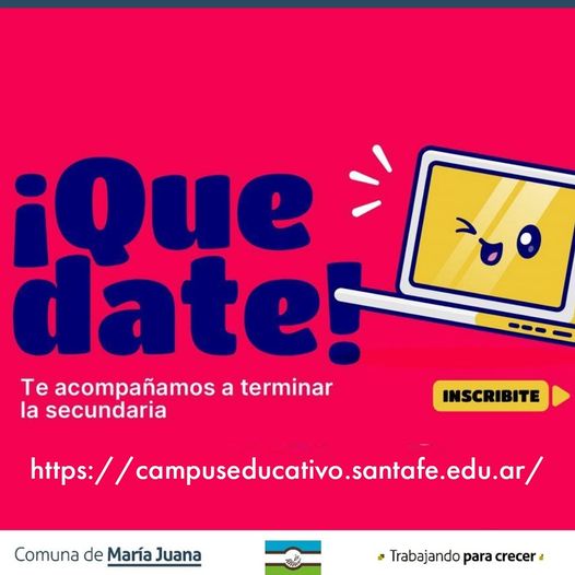 MATÍA JUANA.- La Comuna difundió que se abrió una nueva inscripción a “Quedate”, el programa provincial de acompañamiento para terminar el secundario