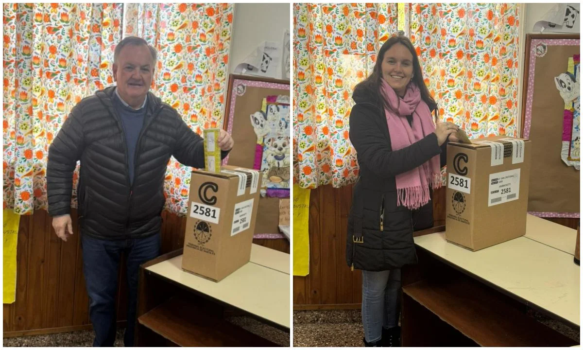 El representante departamental acudió al local de votación junto a la actual presidente comunal, Dianela Michlig, que se presenta como candidata para su tercer mandato y que también emitió su voto en la misma mesa.