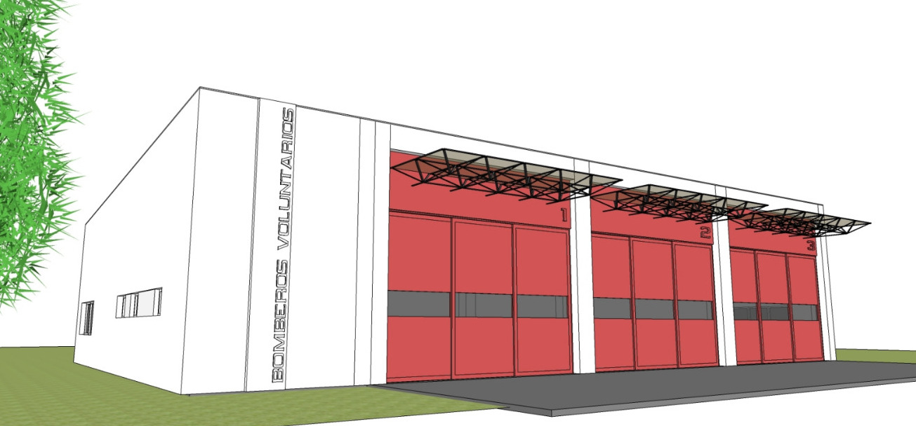 La edificación existente data del año 2017 y cuenta con toda la estructura metálica y su cubierta, con una superficie de 360 metros cuadrados, mientras el proyecto final contempla un amplio espacio para el estacionamiento de vehículos y dependencias de servicios que incluye sanitarios, vestuarios, comedor y sala de reuniones.