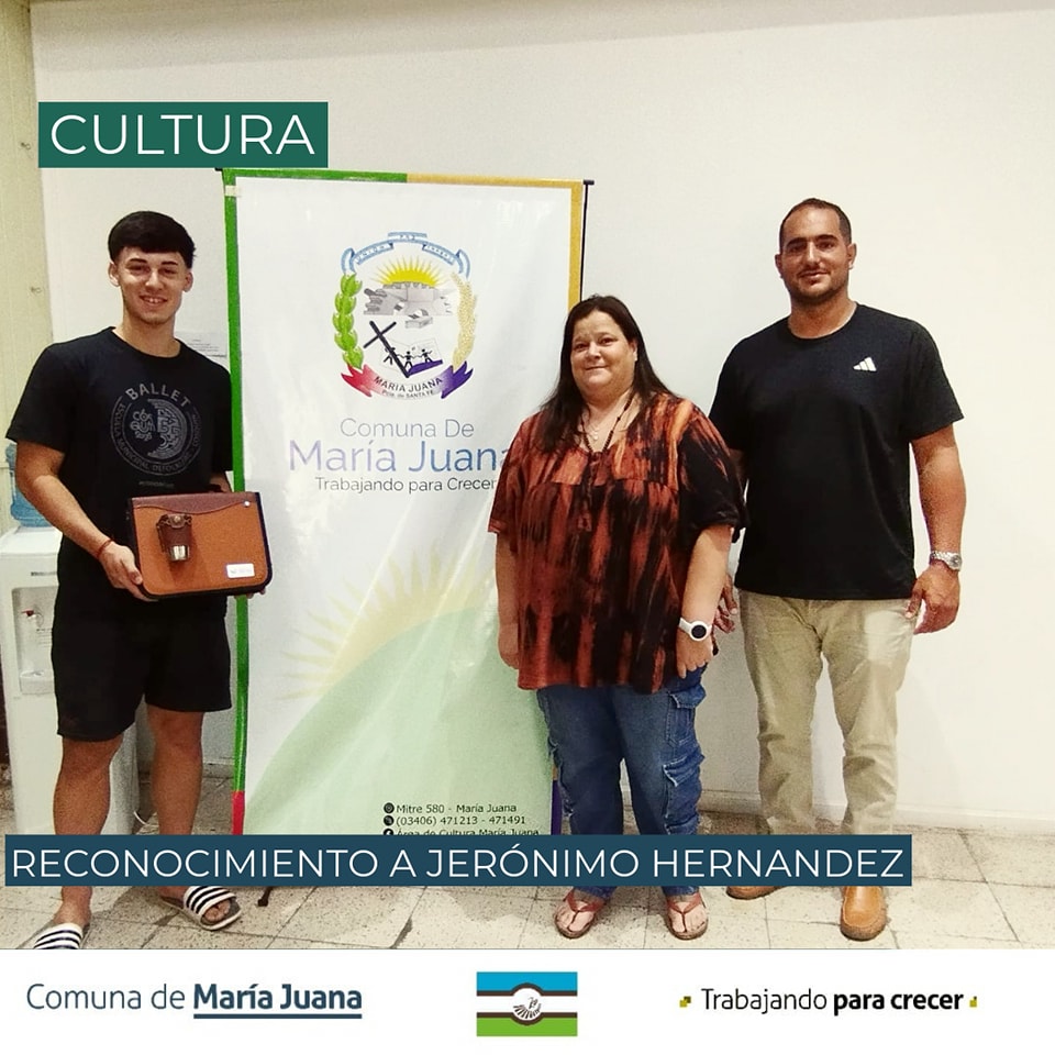 MARÍA JUANA.- Hoy, viernes 7, desde la Comuna de María Juana rindieron homenaje a Jerónimo Hernández, quien una vez más fue parte del Ballet Oficial del Festival Folclórico de Cosquín, representando con orgullo nuestra bandera y llevando el nombre de nuestro pueblo al evento más importante del país.