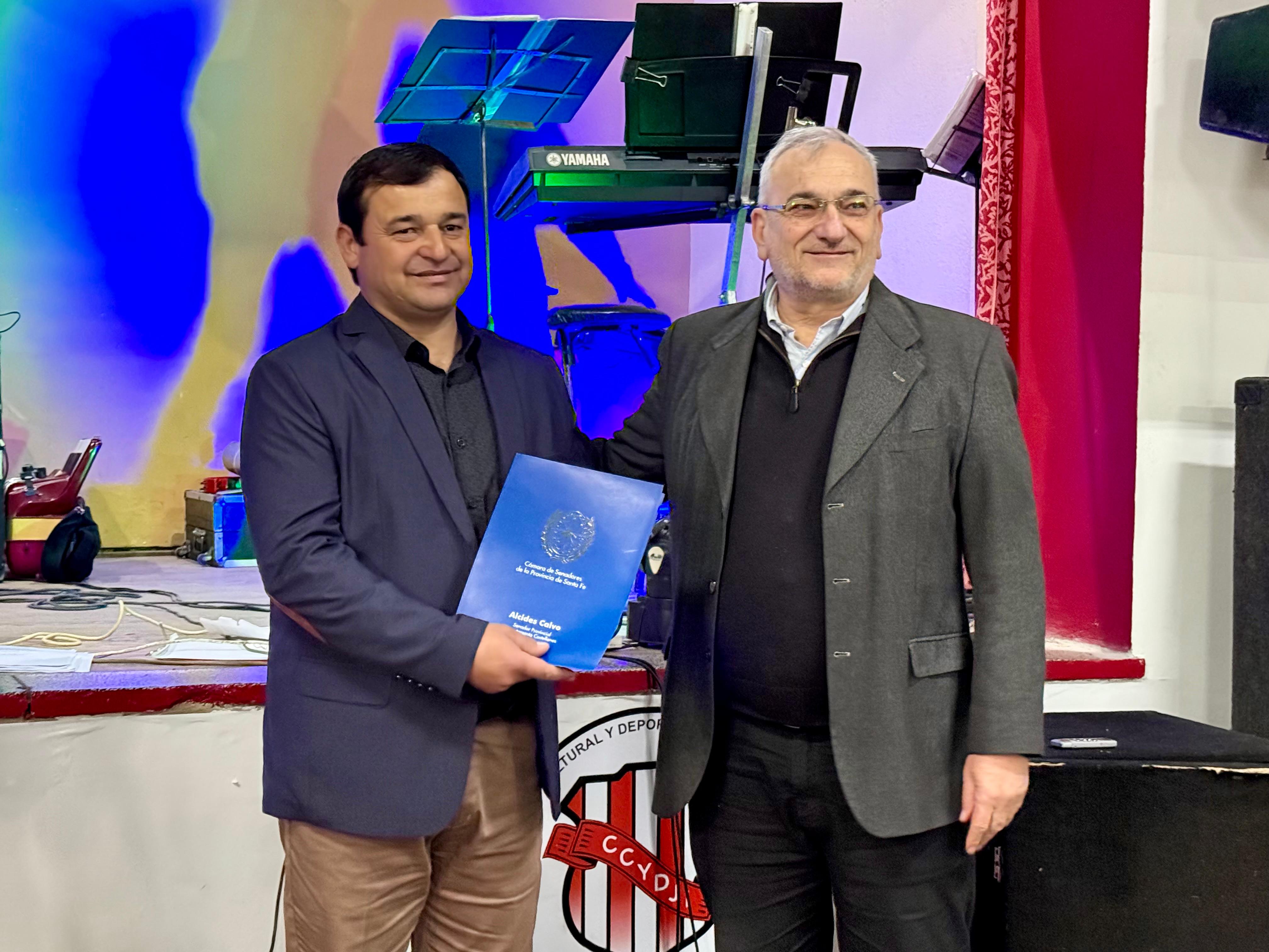 En el marco de la celebración, de la que participaron 400 personas, Calvo hizo entrega al Presidente Comunal de Saguier de un aporte por parte de la Cámara de Senadores de la Provincia de Santa Fe para la realización del evento y la donación de un freezer para su utilización en el salón “25 de Mayo”.