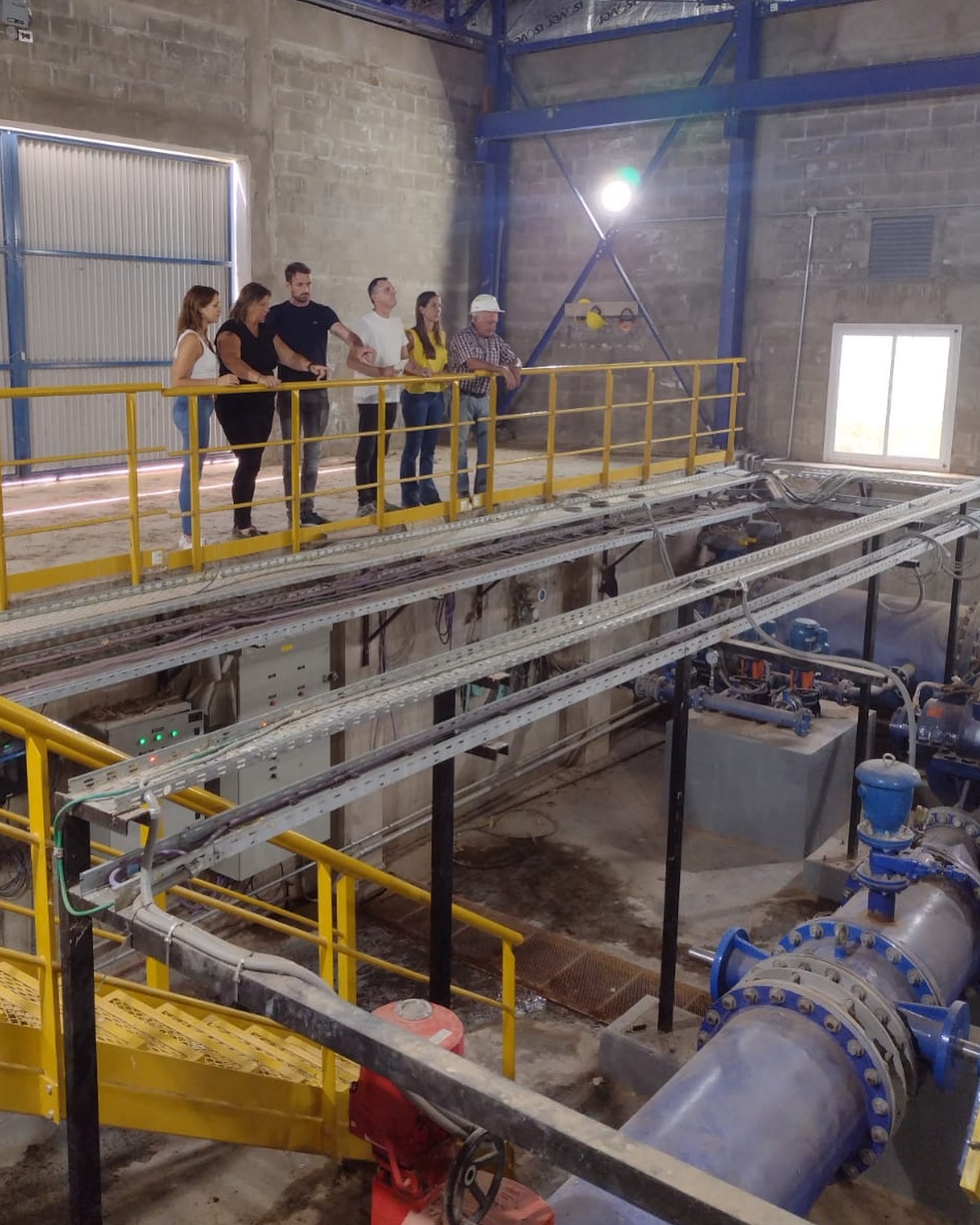 SAN VICENTE.- El intendente Gonzalo Aira, junto a la concejal Gabriela Paniggi, la secretaria de Innovación y Desarrollo Romina Neiff, y el secretario de Intendencia Gonzalo Bertossi, visitó la estación de bombeo número 5 del Acueducto Desvío Arijón, ubicada en Angelica y de donde saldrá el Ramal San Vicente que llevará agua potabilizada a nuestra localidad.