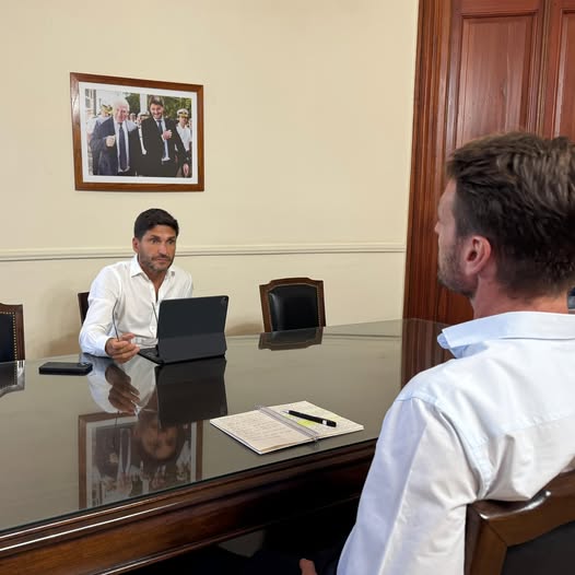 SAN VICENTE.-Durante la reunión mantenida con el gobernador Maximiliano Pullaro, además de tratar temas relacionados con nuestras instituciones, se dialogó sobre el avance de importantes obras públicas para la ciudad.