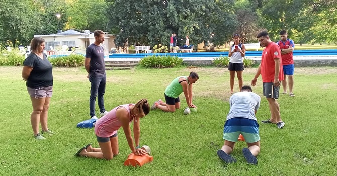SAN VICENTE.- Desde el Municipio local se difundió que en la tardecita del miércoles, se llevó a cabo una práctica de rescate en agua y maniobras de RCP en la pileta del señor Pablo Feraudo, quien gentilmente cedió sus instalaciones para esta importante actividad.