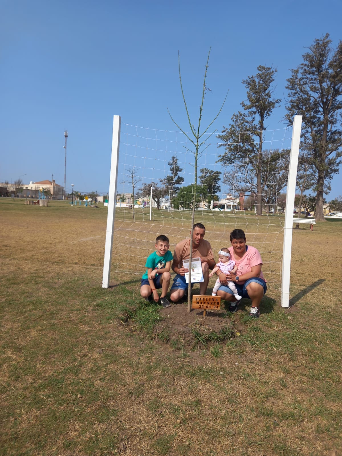 SANTA CLARA DE SAGUIER.- Continuando con el proyecto "Con un árbol bajo el brazo", la Comuna local convocó a los padres de los niños nacidos en el último año a la Plaza de la Libertad. Recordamos que este proyecto consiste en plantar un árbol a nombre de cada niño que nace en la localidad.,