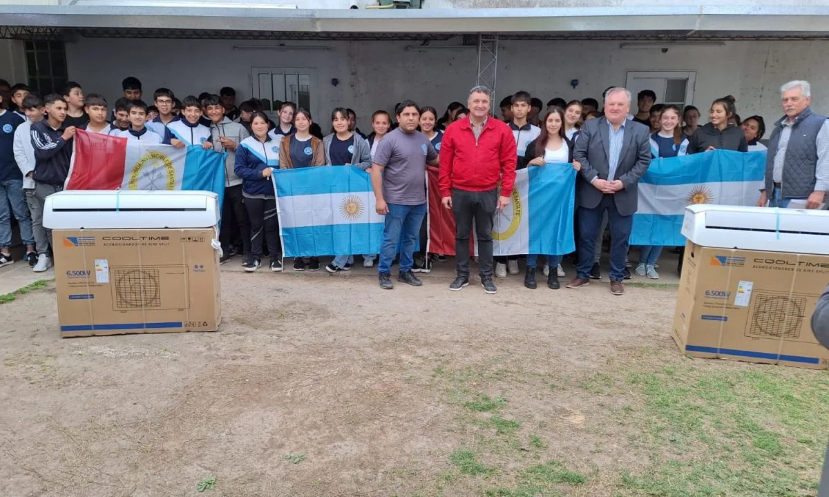 Al final de la recorrida el senador Felipe Michlig y el diputado Marcelo González visitaron la localidad de Soledad -en donde junto a la representante local Sofia Ortiz- visitaron la Escuela N° 491 de Educación Técnica Profesional en donde entregaron dos aires acondicionados Split de 5.500 frigorías, al director interino, Javier Chartier, quien expresó su agradecimiento y aprovechó la oportunidad para exponer una problemática que afecta a la escuela: desde el año 2022, no reciben fondos de Nación para la compra de insumos y herramientas esenciales para la formación técnica de los alumnos.