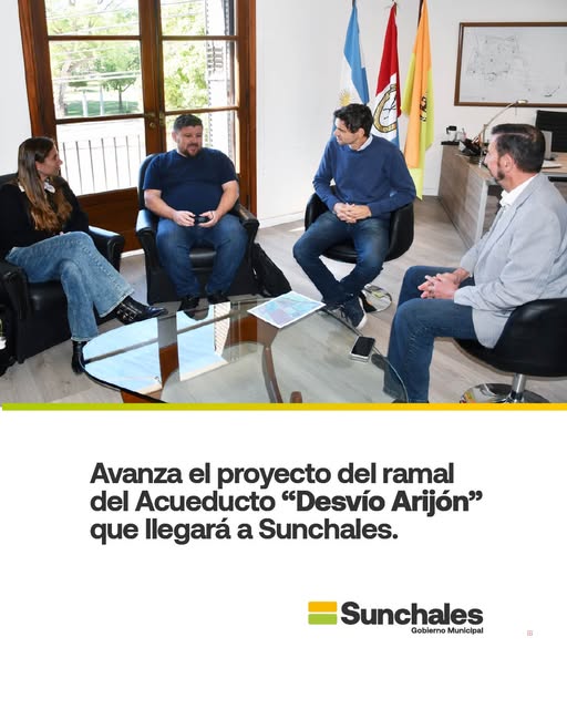 SUNCHALES ( De nuestra Agencia).- Hoy el municipio puso de relieve que el intendente, Pablo Pinotti, mantuvo una reunión de trabajo con la directora Provincial de Acueductos, Paula Nardín, con el objetivo de continuar avanzando en el desarrollo del proyecto del ramal del acueducto “Desvío Arijón”.