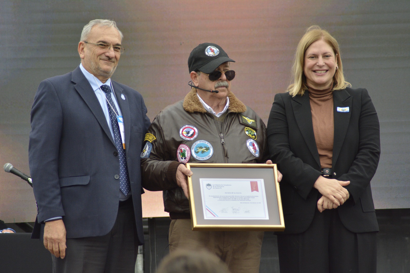 En el momento Calvo Destacó “Es un día histórico para la Provincia de Santa Fe, para el Departamento Castellanos y para Sunchales en particular, pero sin ninguna duda que para Owen Crippa es un momento sin igual porque hoy estamos todos para reconocer la constancia, dedicación y profesionalismo de él y del grupo de Misión Owen que desde hace muchos años sueñan con este momento y con el proyecto del museo, por eso queríamos acompañarlos con la Declaración de Interés Provincial que aprobó el senado provincial y que al momento que nos contaron que el avión había sido adquirido y que con muy buena predisposición de los demás Senadores han aprobado lo que nos permite hacer entrega en esta jornada junto a la vicegobernadora Gisela Scaglia de este reconocimiento tan merecido”.