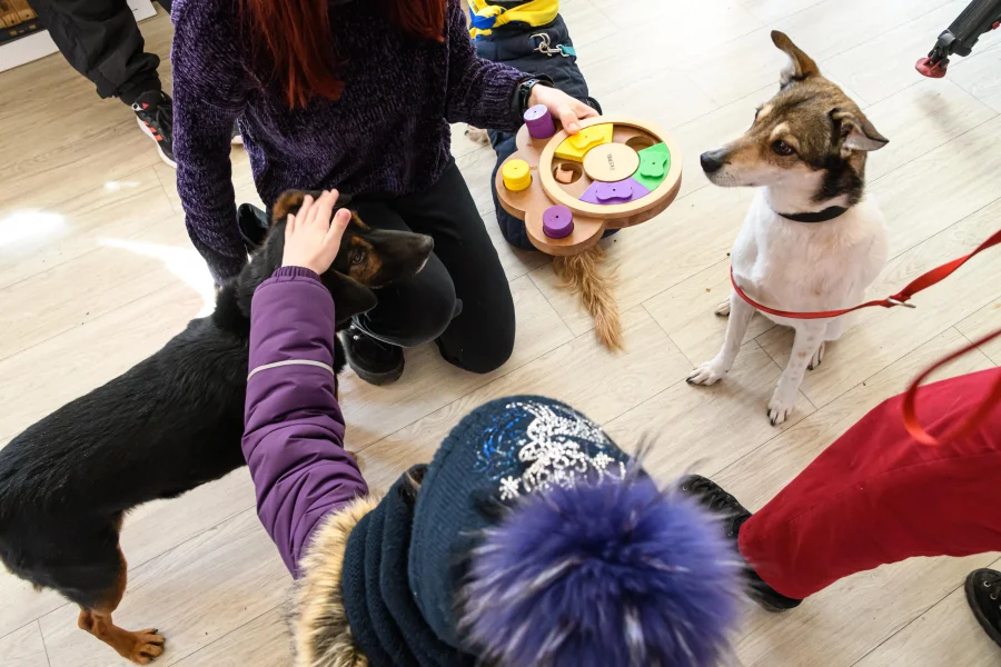 Una organización reconocida en este campo es Four Paws, una ONG dedicada al bienestar animal, que lleva años desarrollando un programa pionero en diferentes países de Europa del Este, pero que actualmente está teniendo especial relevancia en Ucrania, país que se encuentra en plena guerra tras la invasión rusa a principios de 2022. Allí, con su programa de Intervención Asistida con Animales (IAA), Four Paws ayuda a quienes regresan heridos o traumatizados psicológicamente de la zona de combate o a familias reubicadas que tuvieron que abandonar sus hogares y trasladarse al centro de Ucrania.